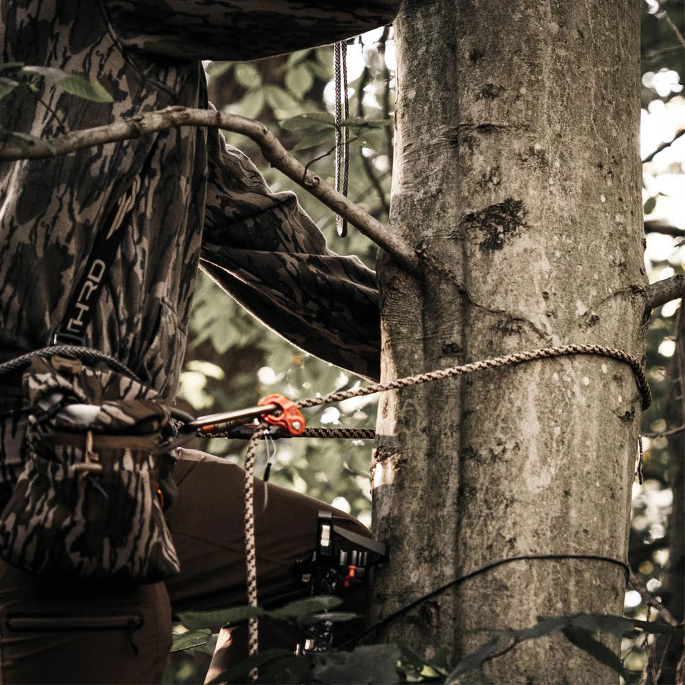 The Lineman Belt is one of the most important pieces of kit in your arsenal. The Lineman Belt safely connects you to the tree while you climb, to help reduce the risk of a fall.