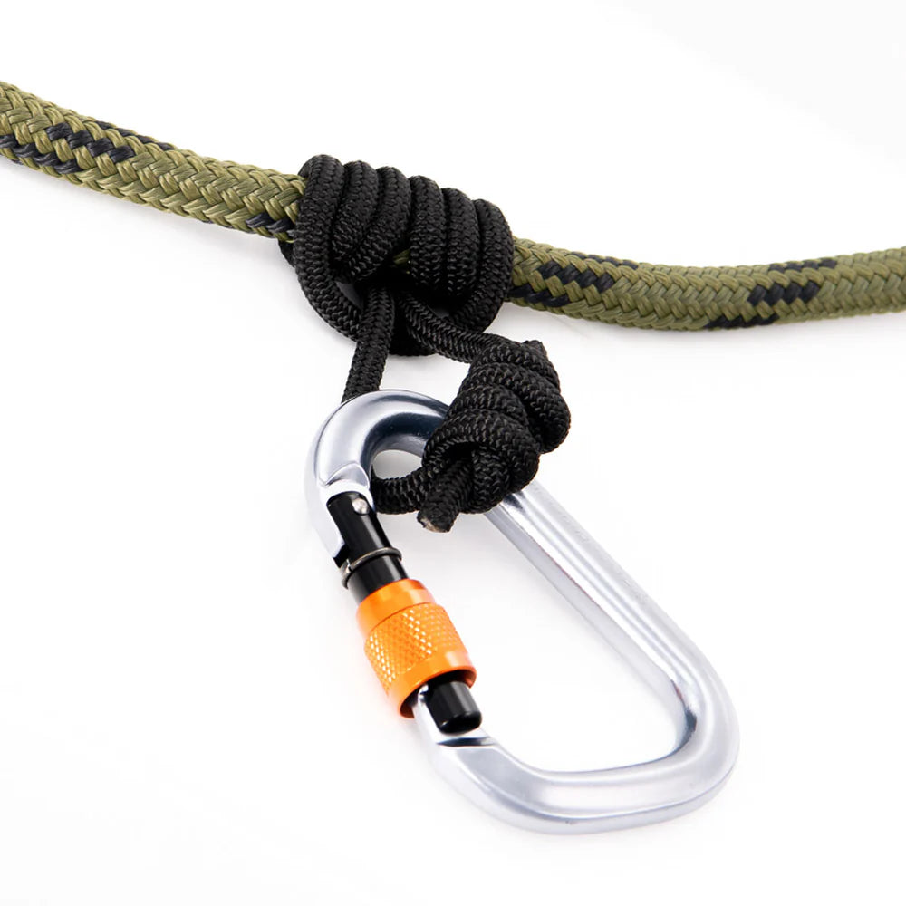Includes 8′ rope with one 2″ factory-spliced eye, 2 ultra lite carabiners, and prusik cord.